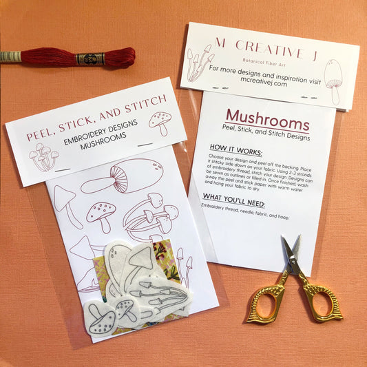 DIY Mushroom Embroidery. Peel Stick and Stitch Patterns