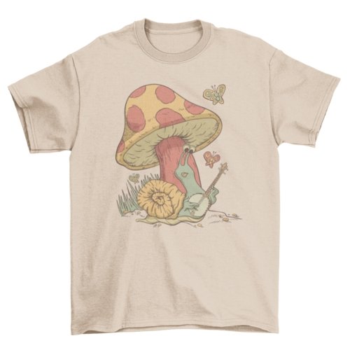 Snail Playing Banjo Mushroom Tee